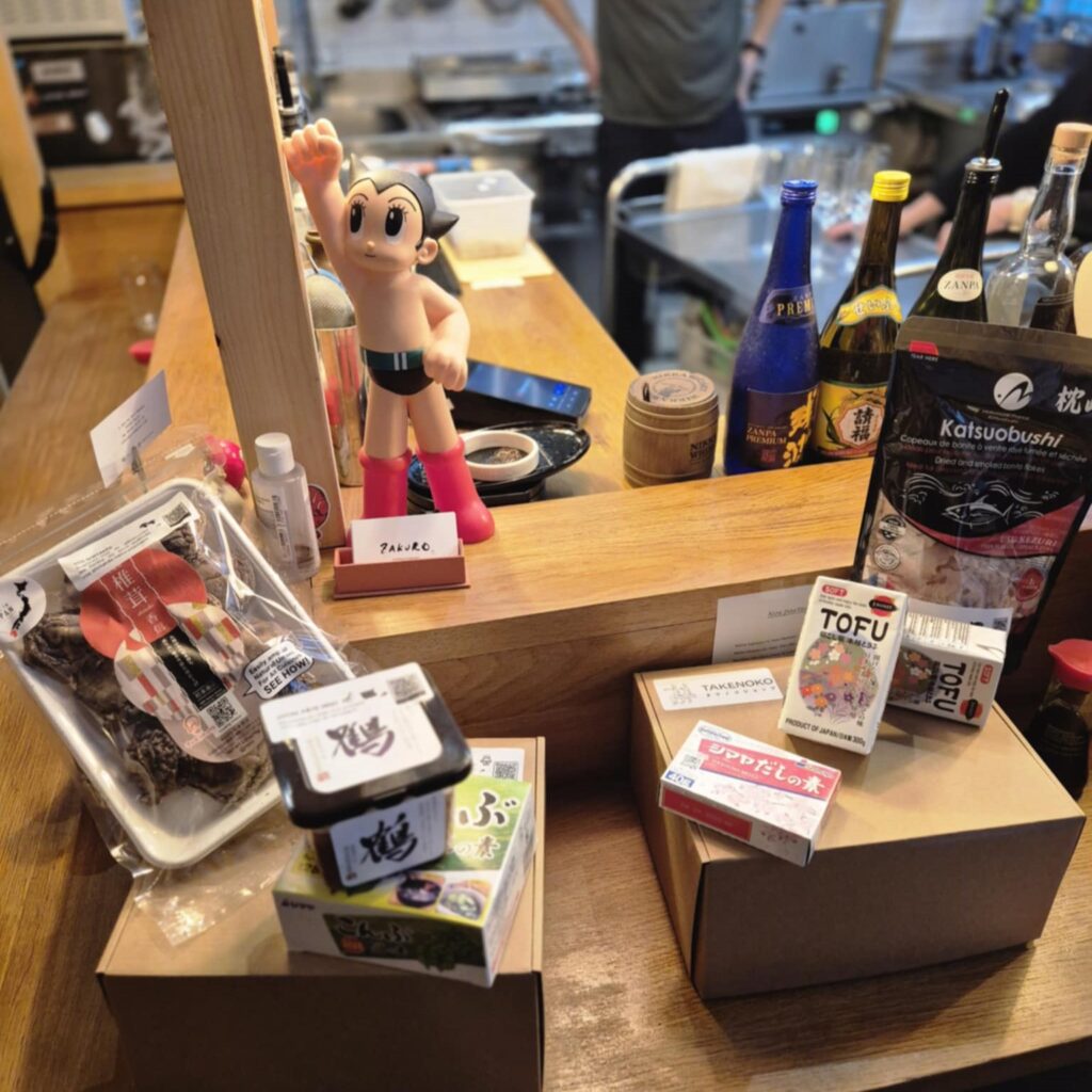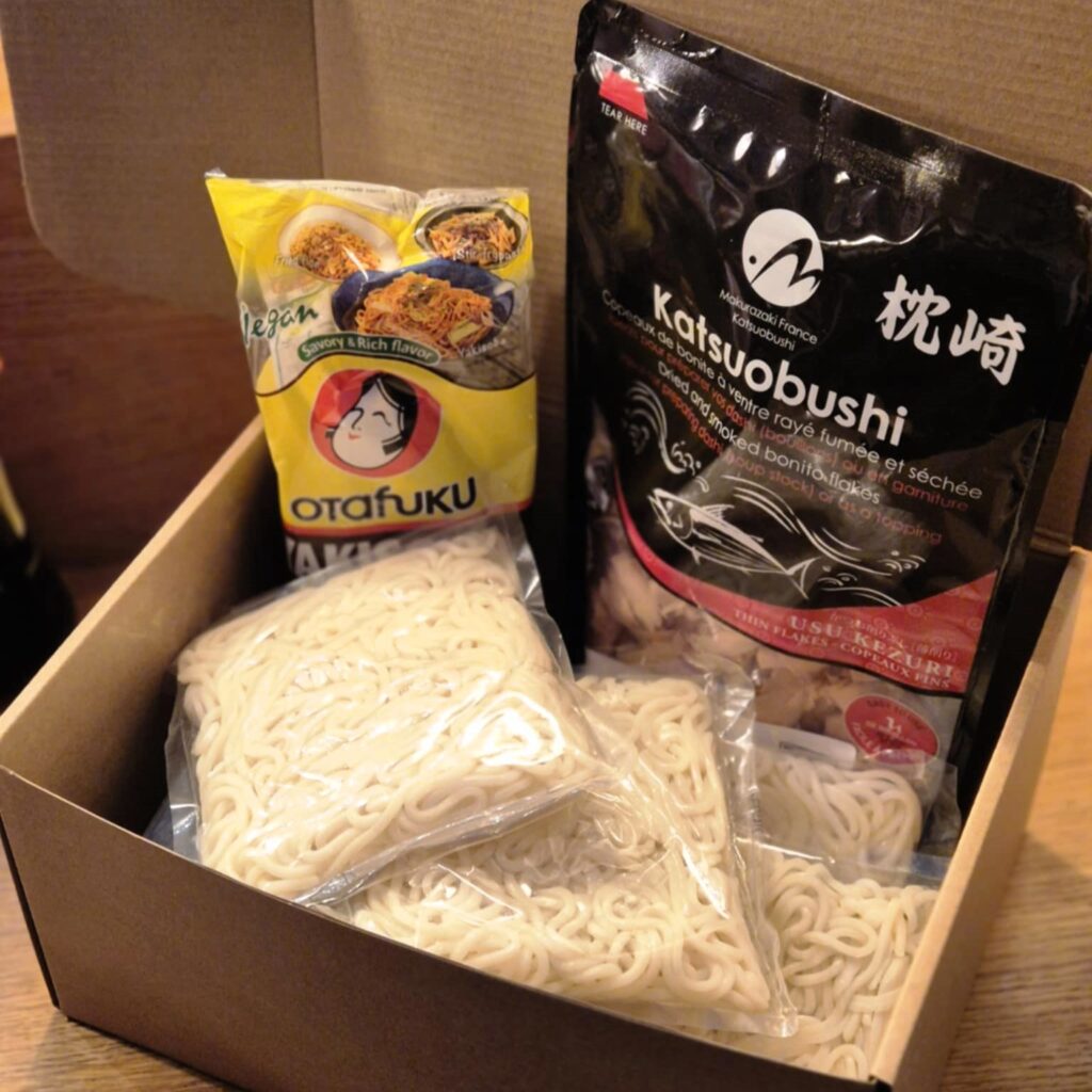 Vous avez envie de cuisiner japonais, d’organiser une soirée « ramen » pour vos amis, mais vous ne savez pas trop comment vous y prendre et ne disposez pas des produits adéquats… Takenoko est là pour vous servir ! Commandez en un clic et recevez chez vous le kit repas qui vous permettra de concocter le plat de votre choix : le kit de soupe miso « Shiitake » pour 30 bols (35 €) ; le kit pour 15 « Okonomiyaki » (25 €) ; le kit « Tofu soyeux frit » (19 € les 4 portions) ; le kit de nouilles « Yaki soba » (25 € pour 4 à 8 personnes, en fonction de l’appétit !) ; le kit « Ramen » (38 € pour 8 bols)…